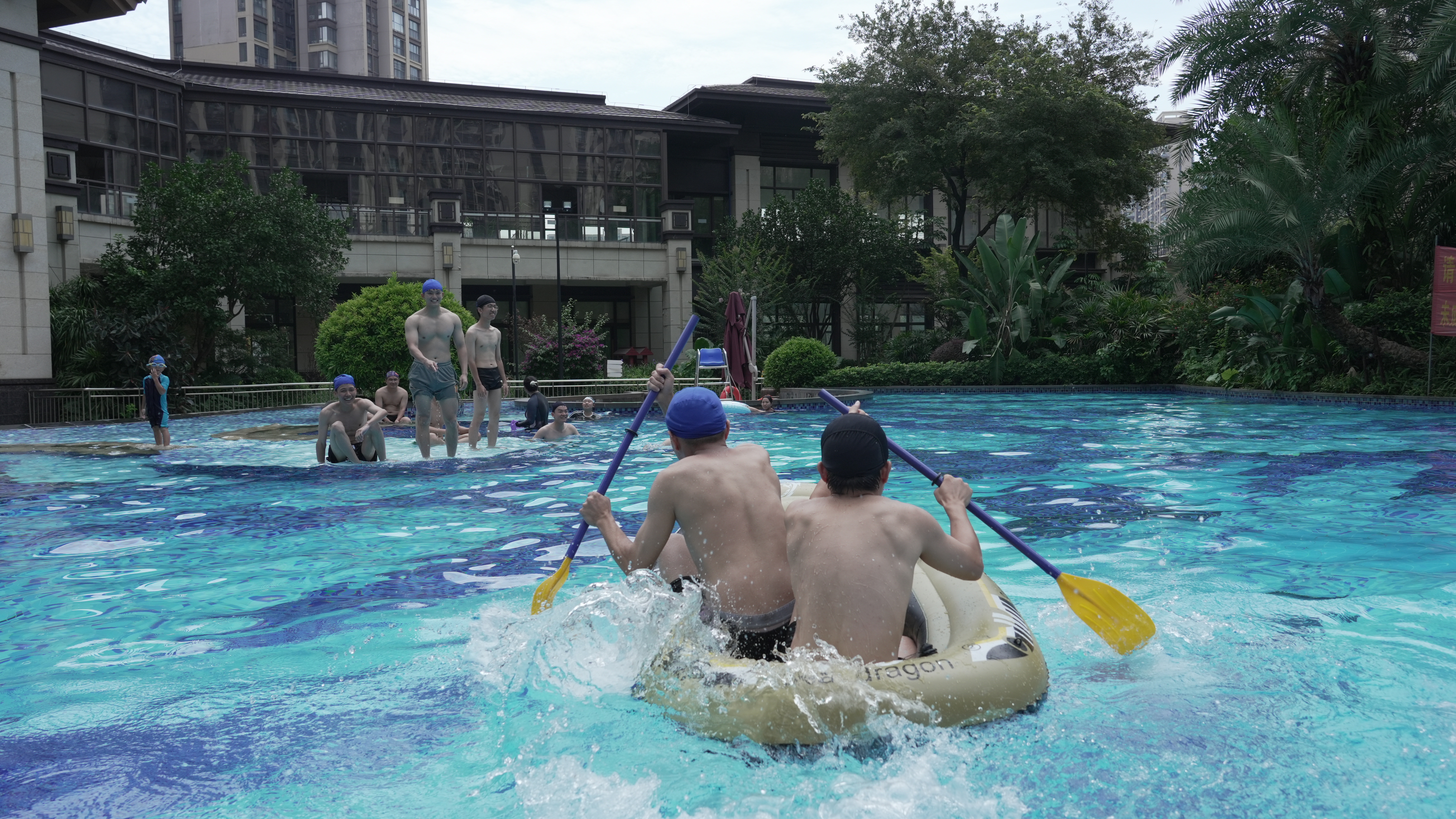 本次運動會設置了三項趣味與協(xié)作并重的水上項目:蒙眼接水挑戰(zhàn)、皮劃艇競速和水上氣排球賽。各代表隊奮勇爭先、默契配合,在歡聲笑語中展現(xiàn)出福達人昂揚向上的精神風貌。